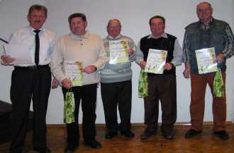 Jahreshauptversammlung die vier noch aktiven und zwei nicht mehr aktive Gründungsmitglieder mit einer Urkunde und einem kleinen flüssigen Geschenk zu ehren. Mit dem Vereinsabzeichen in Silber für 20